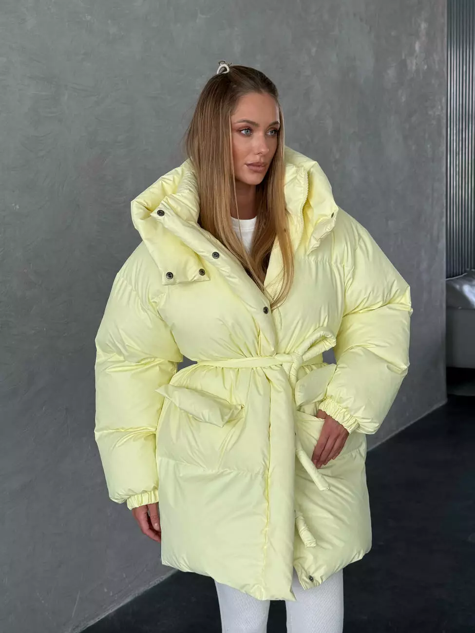 Зимовий ПУФЕР виконаний з плащівки , що є непродувною і водонепроникаючою, прямого крою В комплекті йде пояс ,достатньо обʼємна