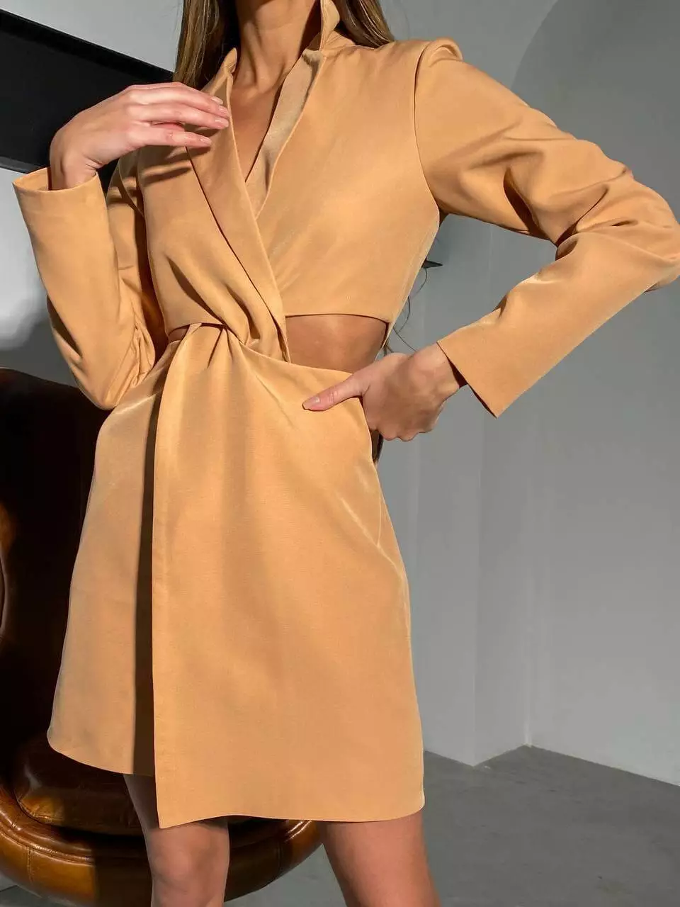 Однотонна сукня-блейзер одночасно виглядає лаконічно та елегантно та для зручності надягання є потайна застібка на спинці, по центру