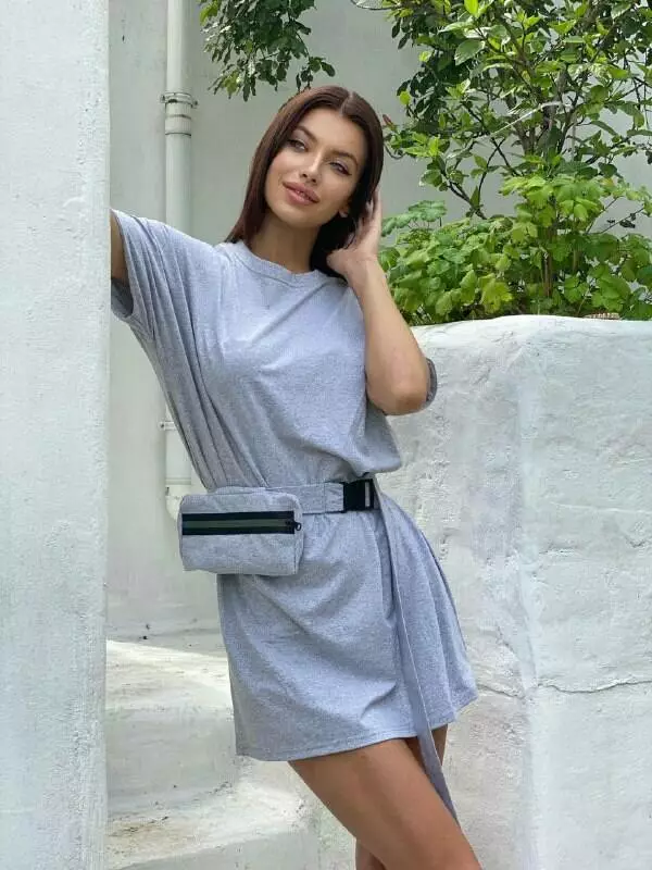 Трикотажное летнее платье из хлопка с поясной съёмной сумкой