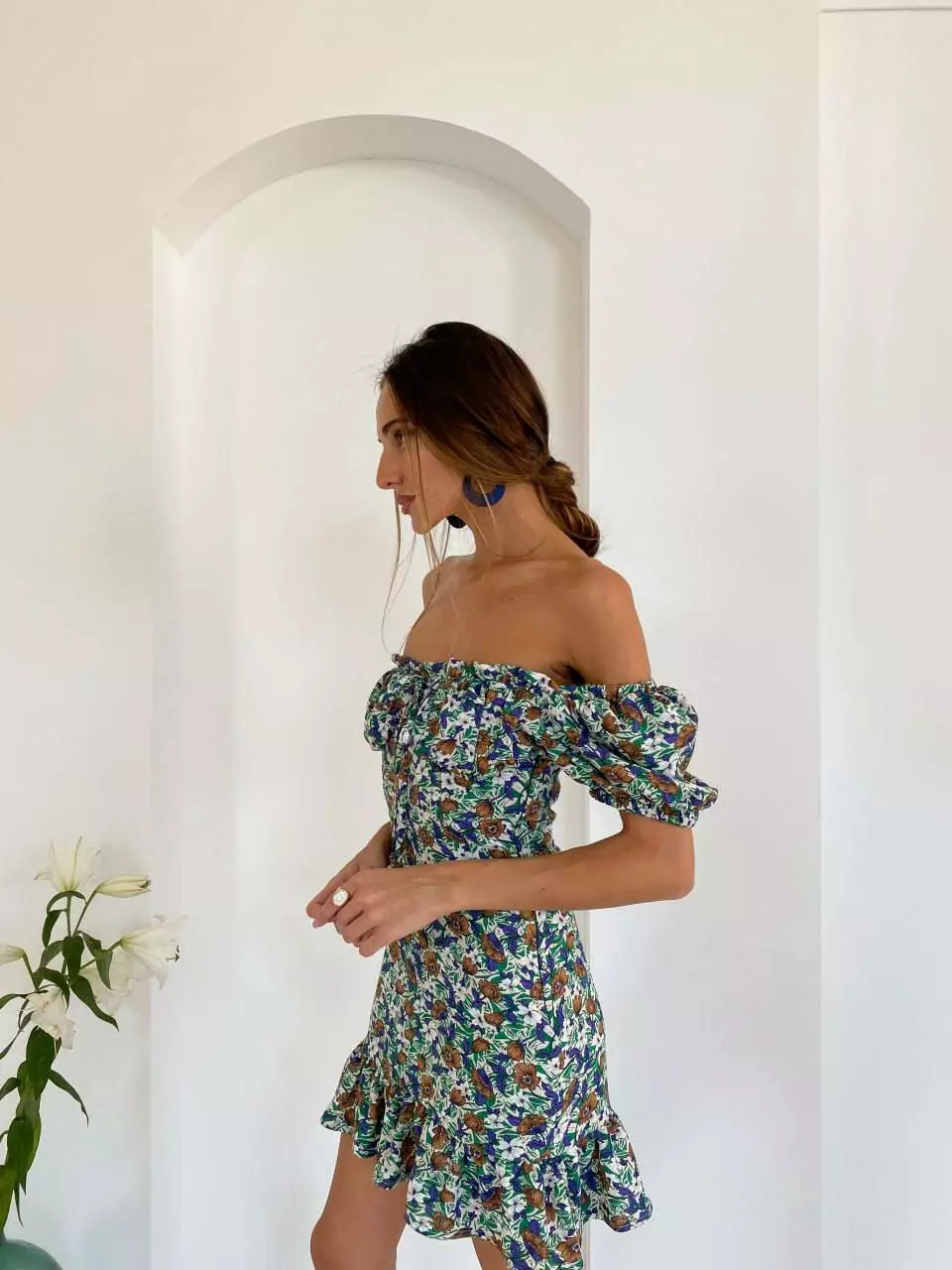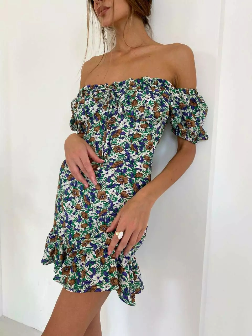 Літня ніжна міні сукня з імітацією ліфа, оборками по низу та верху.