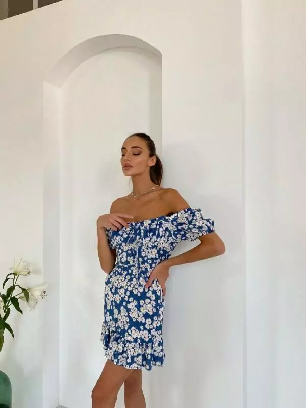 Літня ніжна міні сукня з імітацією ліфа, оборками по низу та верху.