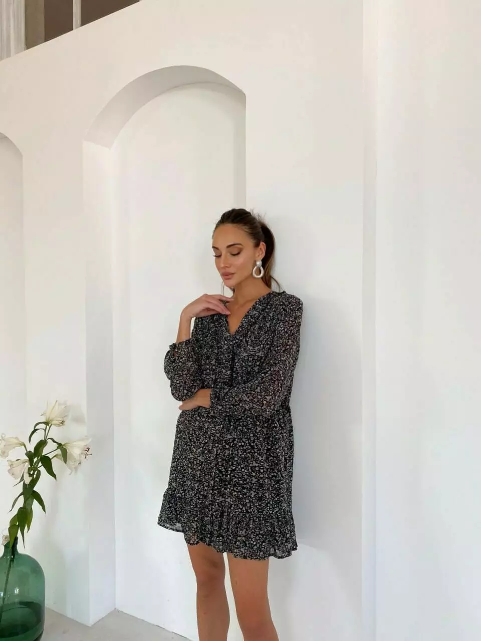 Повітряна, романтична, легка, струминна, міні-сукня з нашої весняної колекції. Широкого прямого крою. Застібається на гудзики по переду.