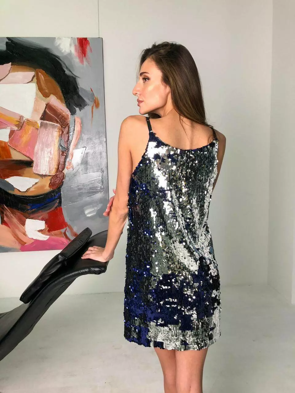 Модель представлена на тонких бретелях та має підкладку, що робить плаття легким та приємним до тіла