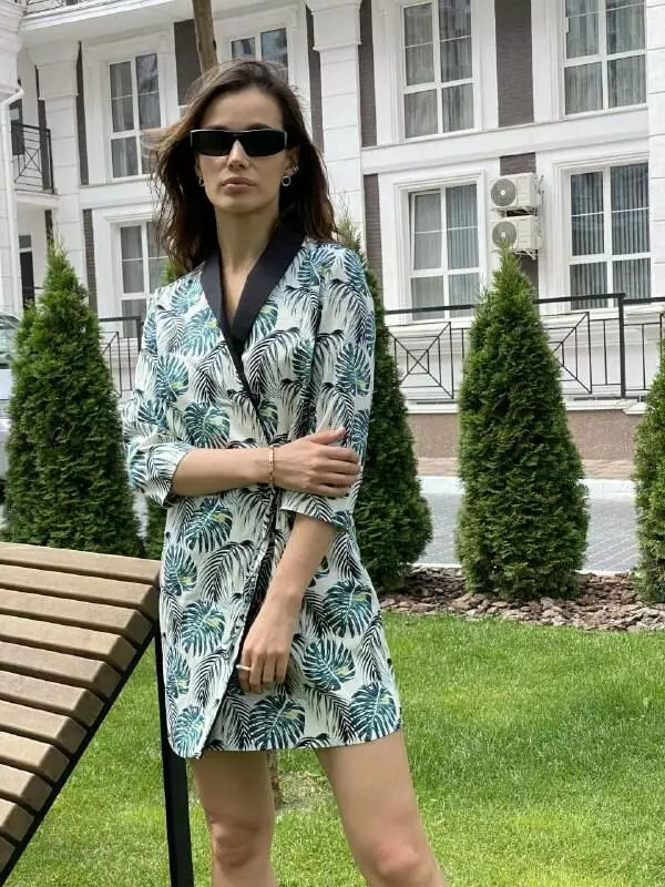 Застібається всередині на пуговицю і зав'язується на пришивний пояс