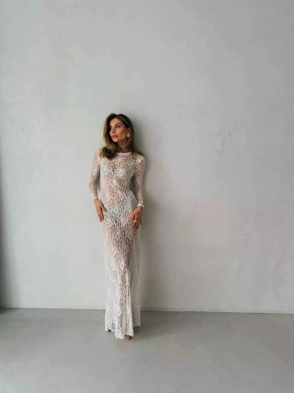 Тренд сезону, мереживна прозора сукня в стилі лонг-слів.