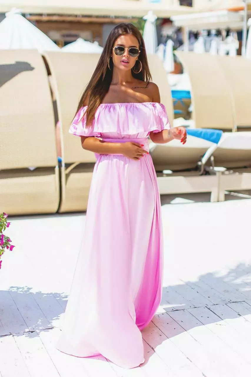 Літня сукня в підлогу човник, гумка під грудьми, пояс у комплекті