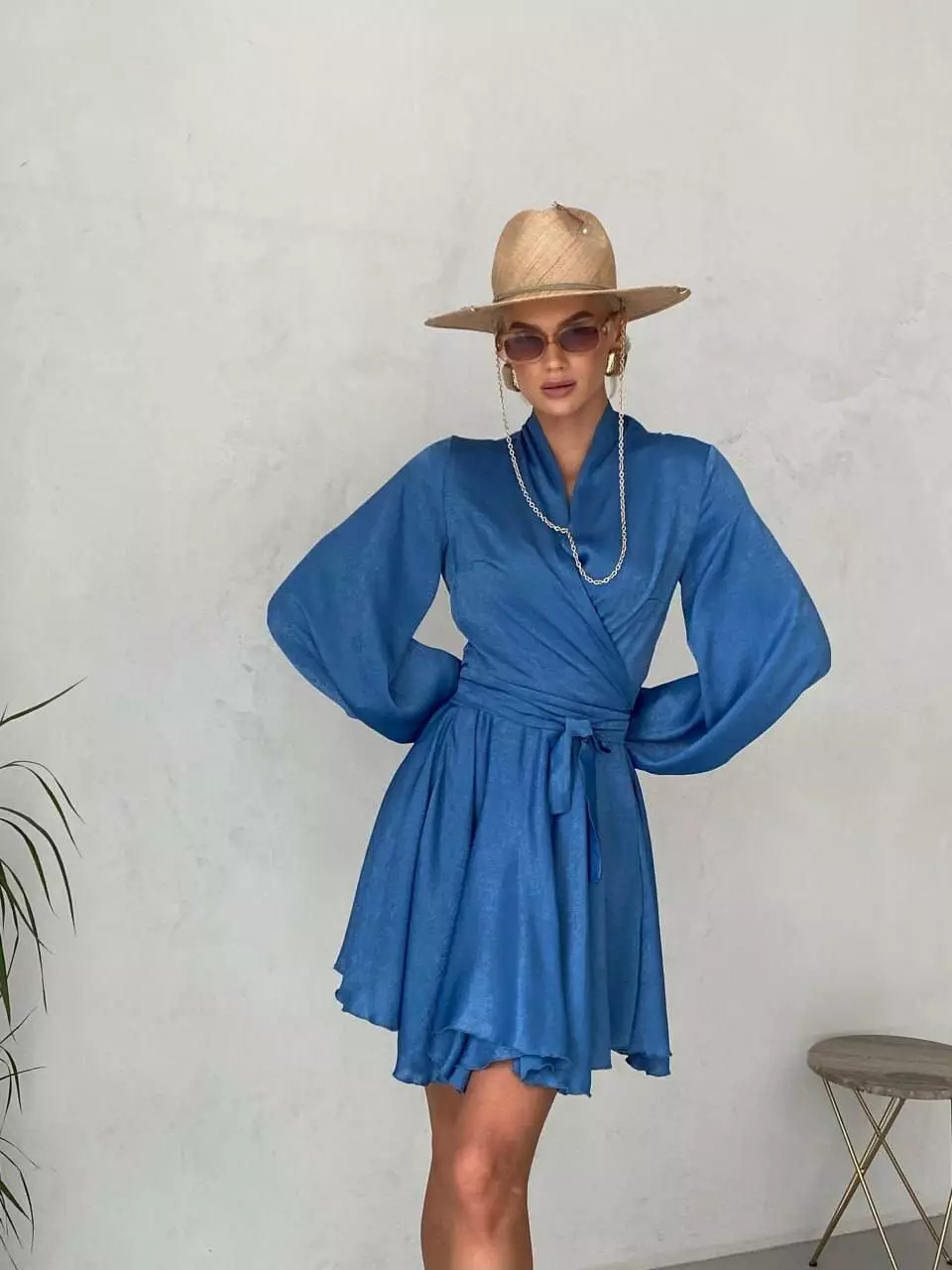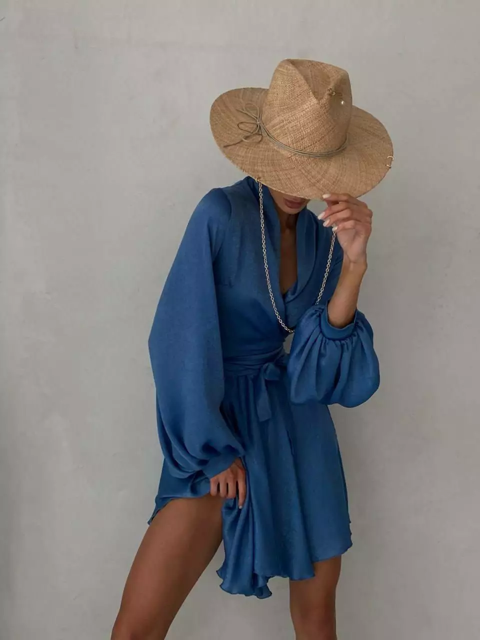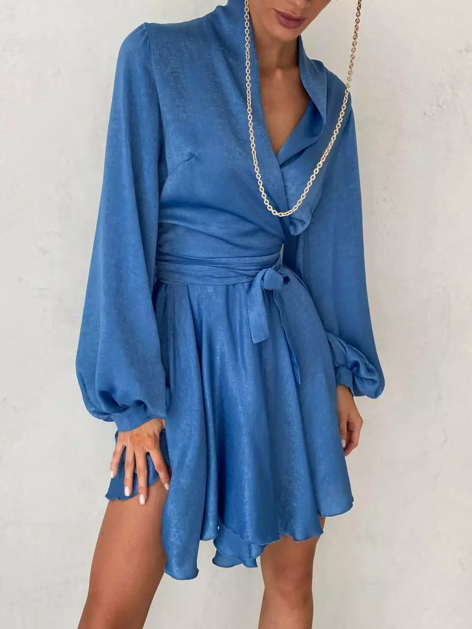 Легка, повітряна сукня з рукавами Несеметричний низ сукні Дуже пишні рукава Сукня зав'язується на запах довгими зав'язками Розмір: one size 42-46