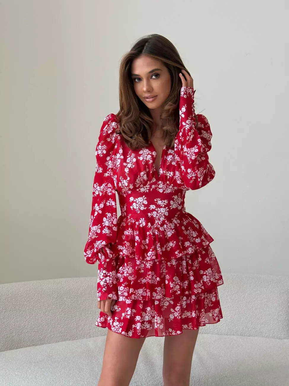 Сукня VIKKY колір квіти білі на червоному