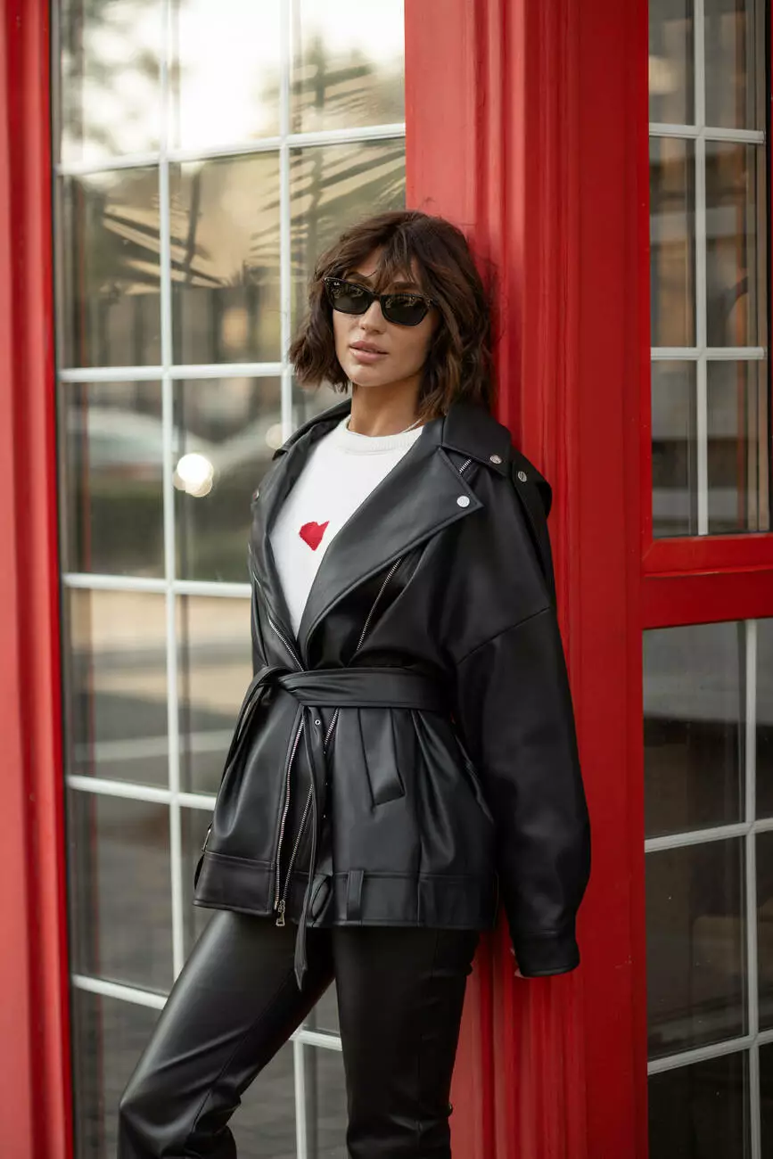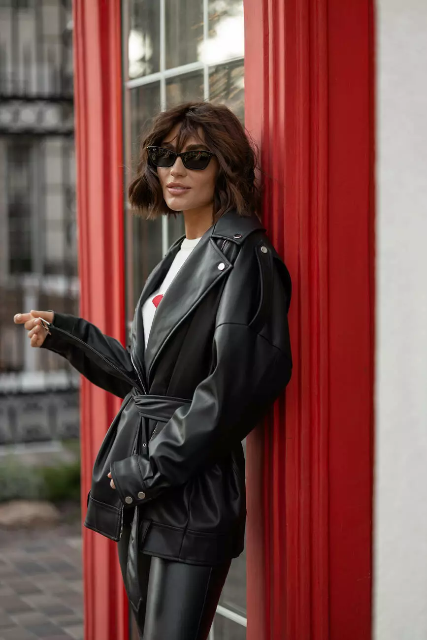 Універсальна куртка PILOT NEW (подовжена) з екошкіри оверсайз з ременем чорного кольору