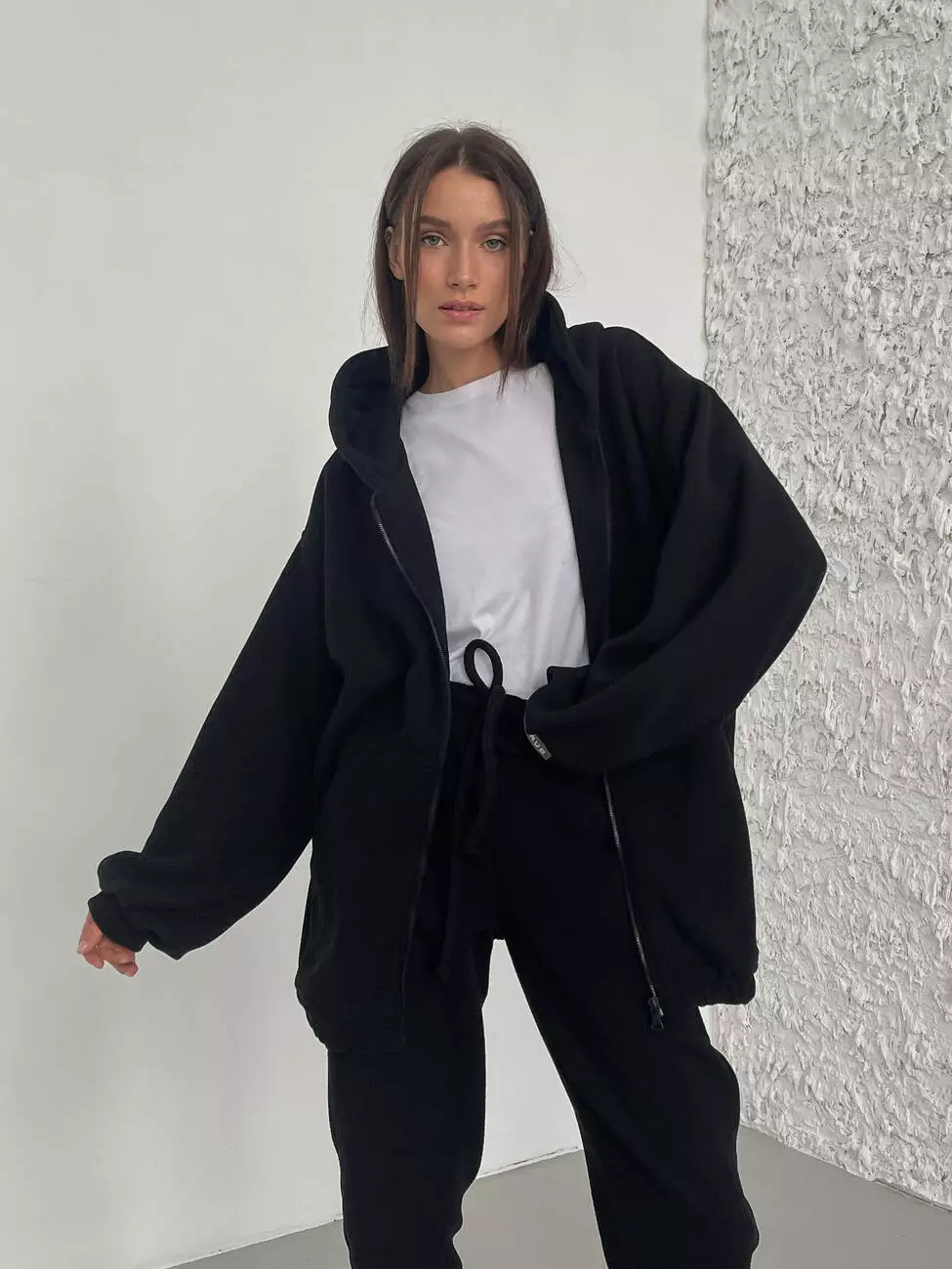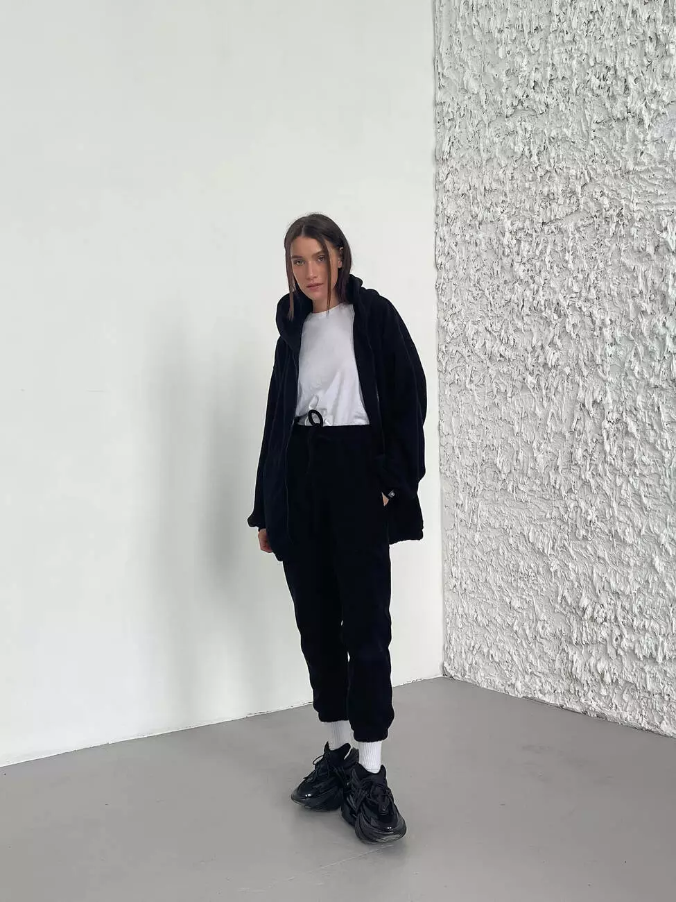 Жіночий флісовий базовий костюм ZIP блискавка чорного кольору